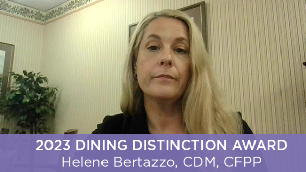The Dining Distinction Award, honors a member that has contributed significantly to the health and well-being of individuals while providing an optimal dining experience, including the nutritional value of food, presentation, the environment in which food is served and interactions with clients.